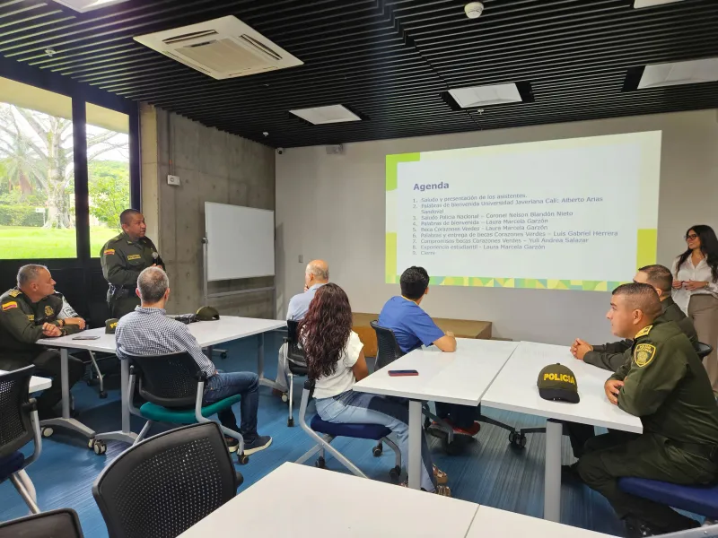 El encuentro continuó con Laura Garzón explicando cómo la Beca Corazones Verdes es una muestra del propósito superior de la Javeriana Cali con la transformación de vidas y entornos, al brindar la posibilidad de acceso a educación de calidad para que los hombres y mujeres policías y sus familias disfruten de la misma paz y tranquilidad que brindan a la sociedad accediendo a educación superior en una universidad innovadora con incidencia e impacto en el país.